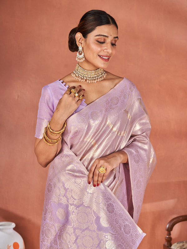 Ethnic Motifs Embroidered Sequinned Saree in purple