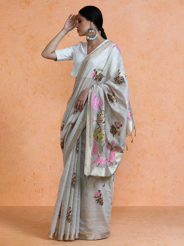 Mitera Ethnic Motifs Designer Chanderi Saree in orange