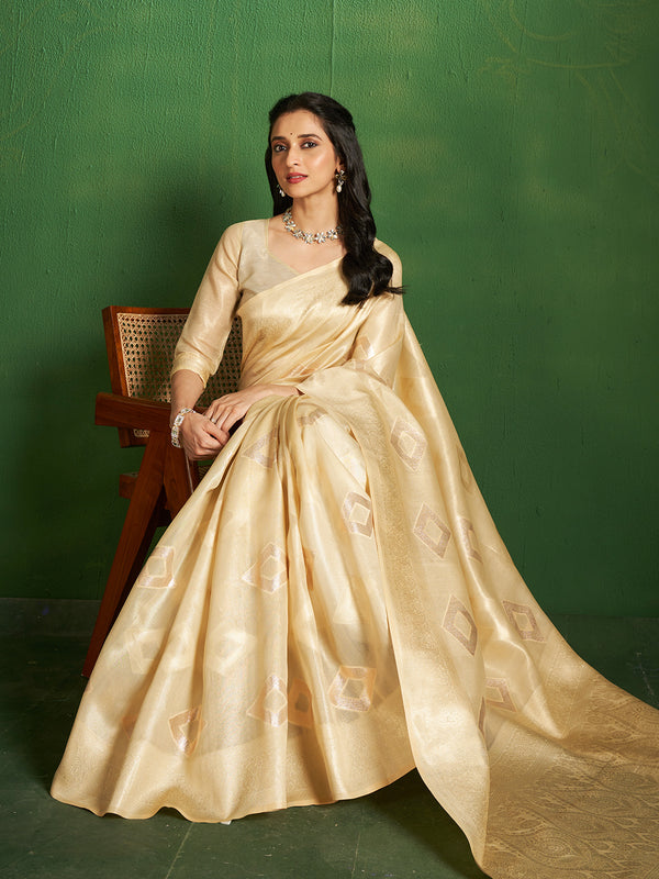 Sarha Woven Design Zari Banarasi Saree in Beige