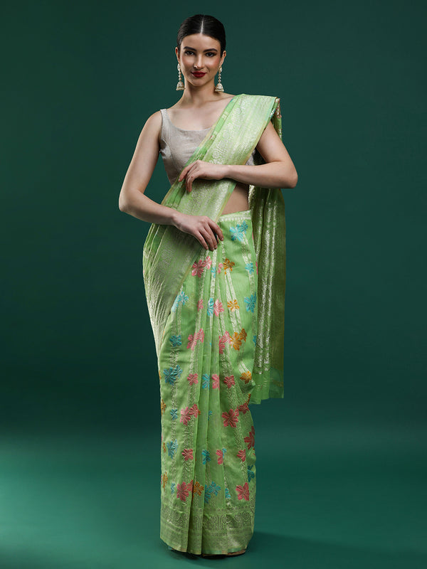 Sarha Women Woven Design Zari Banarasi Saree in Green