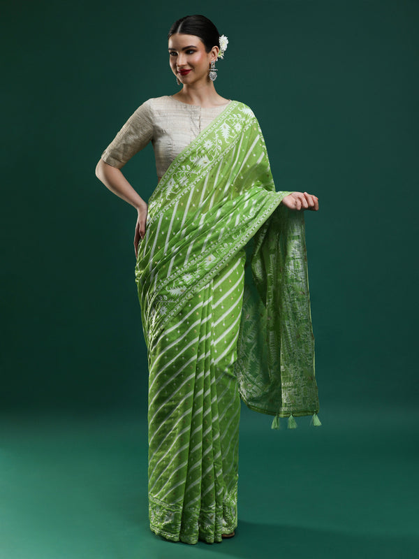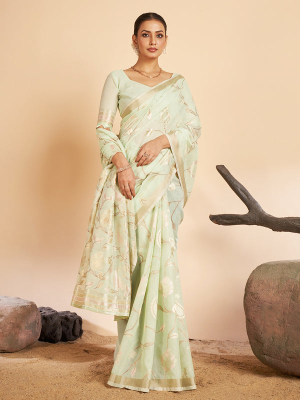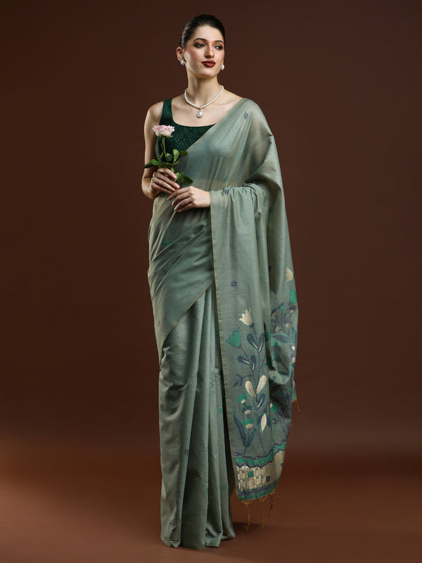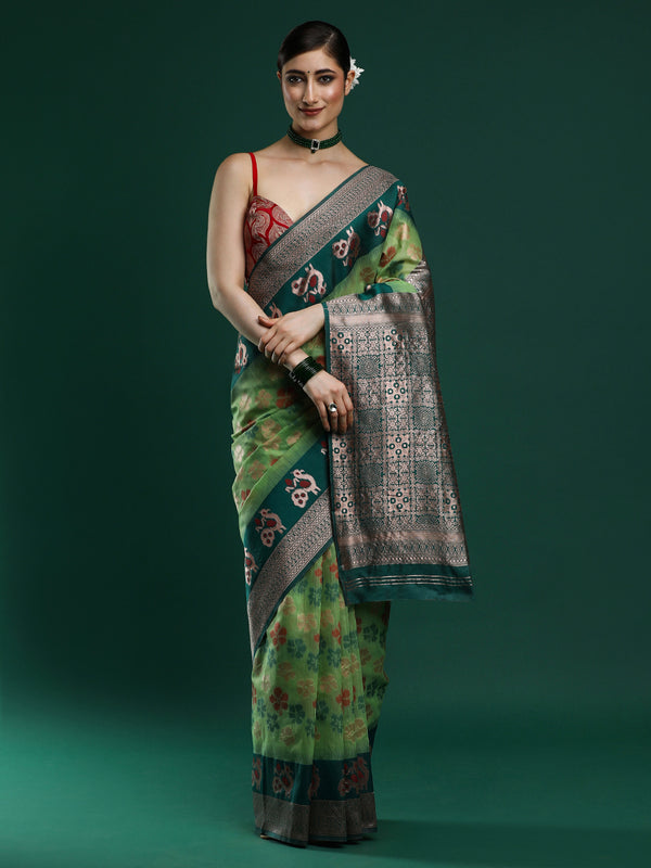Sarha Women Woven Design Zari Chanderi Saree in Green