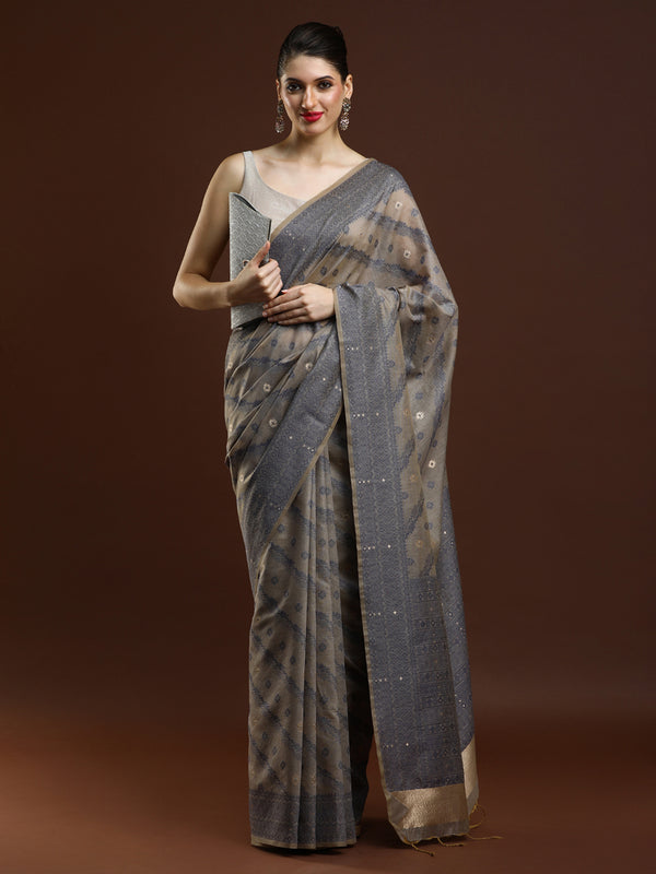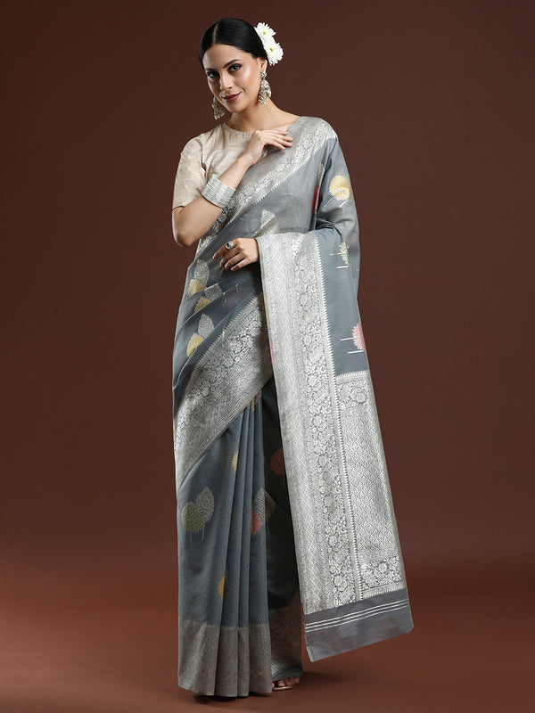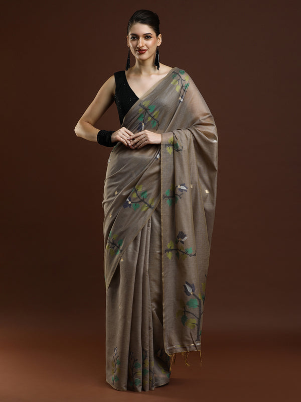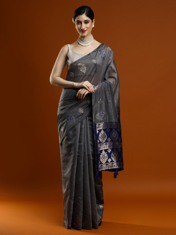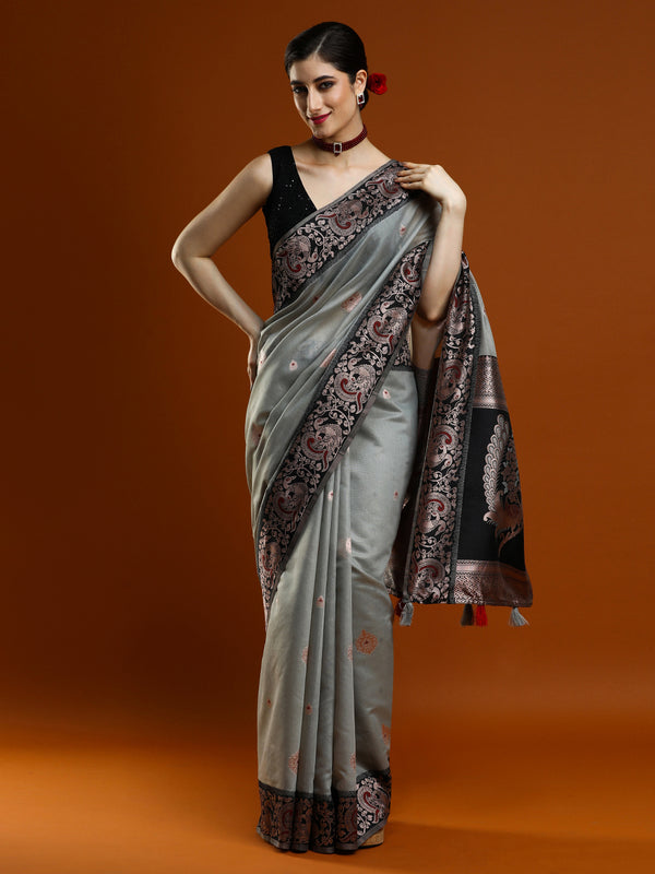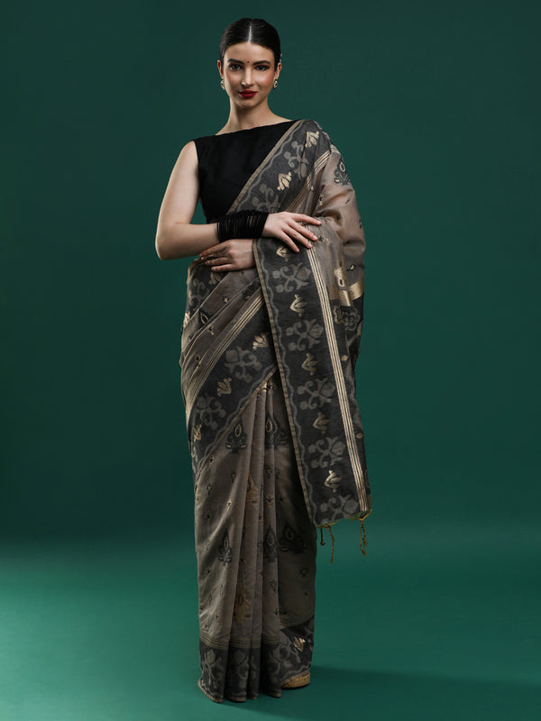 Sarha Women Ethnic Woven Design Zari Muga Saree in Grey
