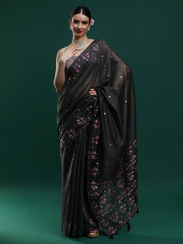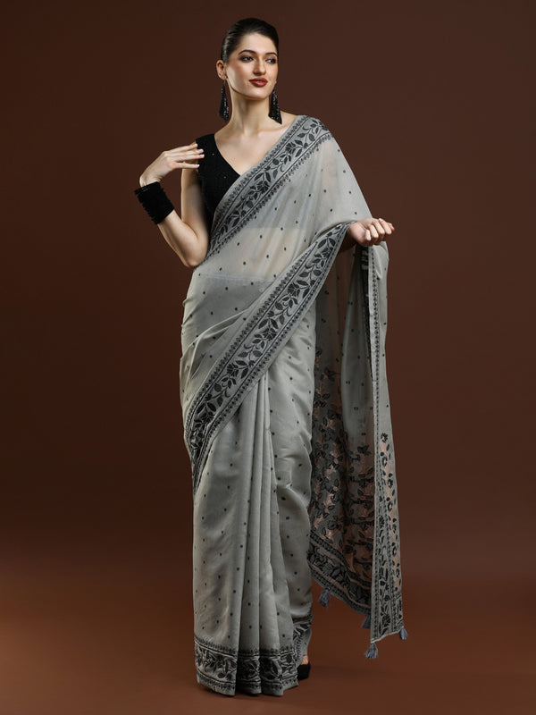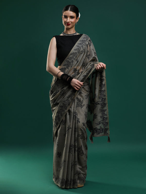 Sarha Women Ethnic Motifs Woven Design Chanderi Saree in Grey