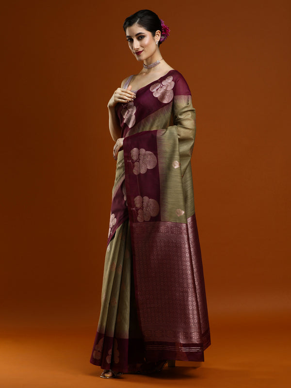 Sarha Woven Design Zari Muga Regular Saree in Grey