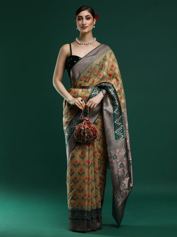Woven Design Chanderi Cotton Saree in Green