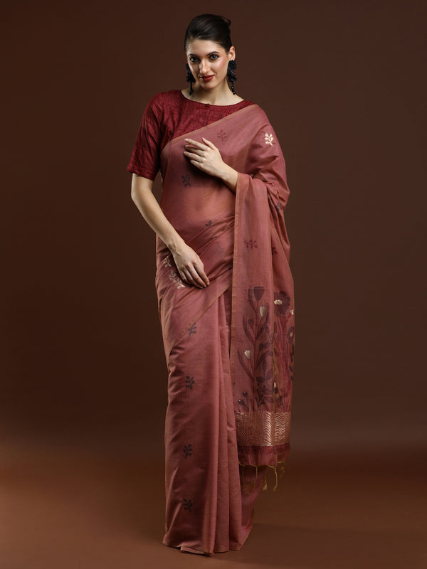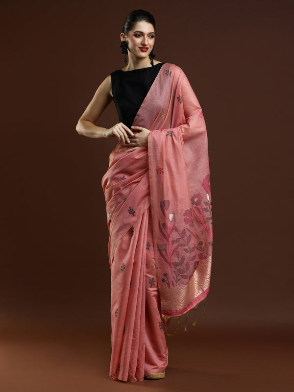 Sarha Floral Woven Design Zari Muga Saree in Pink