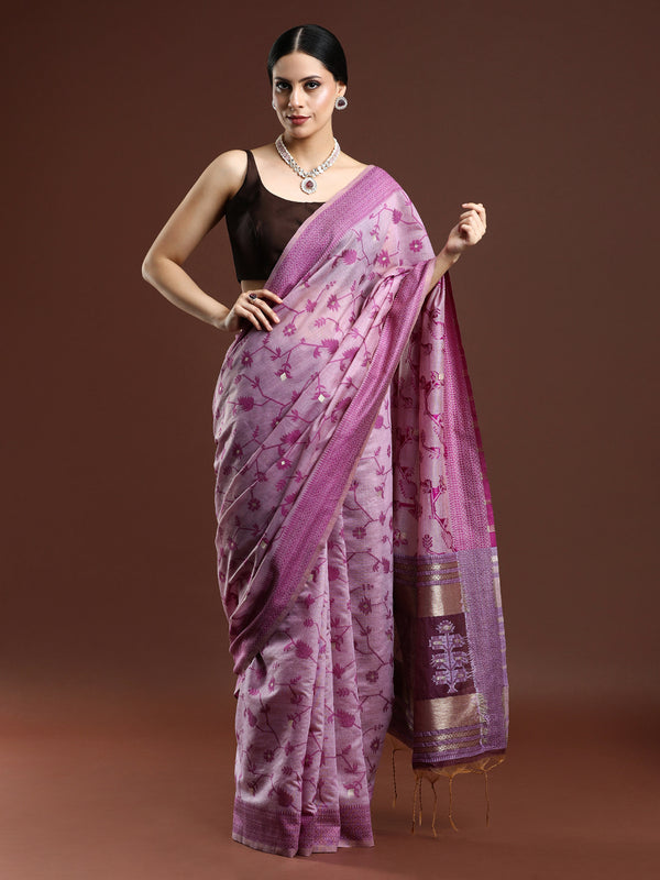 Woven Design Floral Chanderi Cotton Saree in Purple