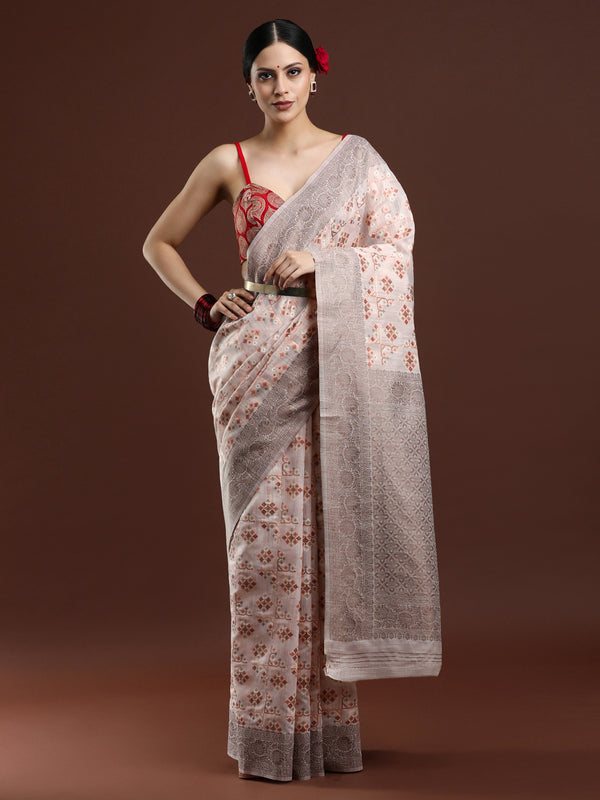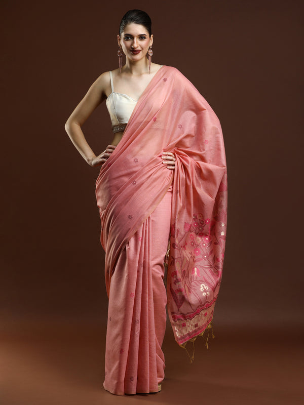 Sarha Floral Woven Design Zari Muga Saree in Light Pink