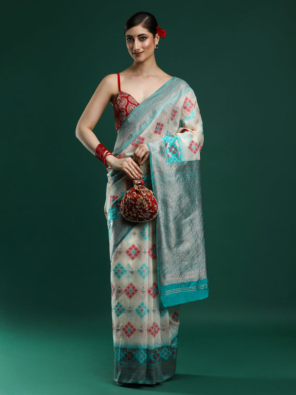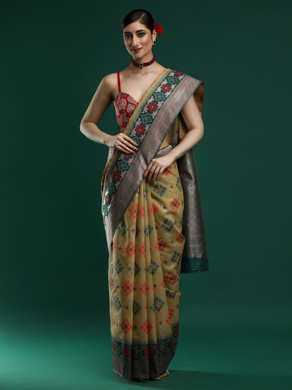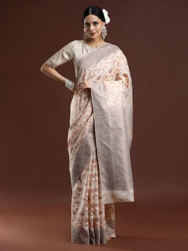 Sarha Ethnic Motifs Woven Design Zari Muga Saree in Beige