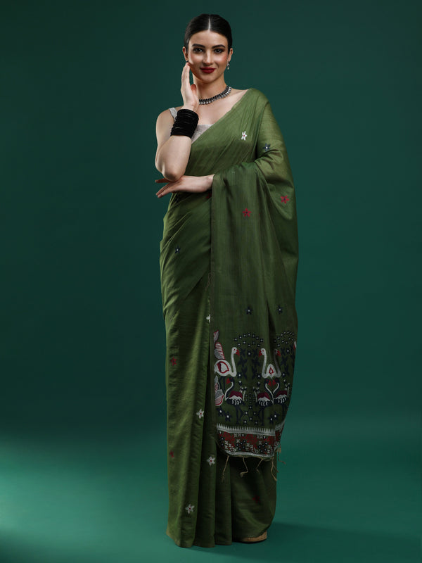 Sarha Woven Design Zari Muga Saree in Olive Green