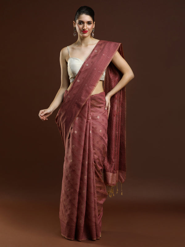 Sarha Ethnic Motifs Designer Muga Saree in Wine