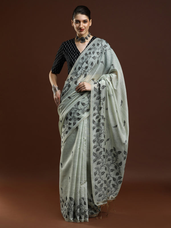Sarha Floral Woven Design Chanderi Saree in Light Grey
