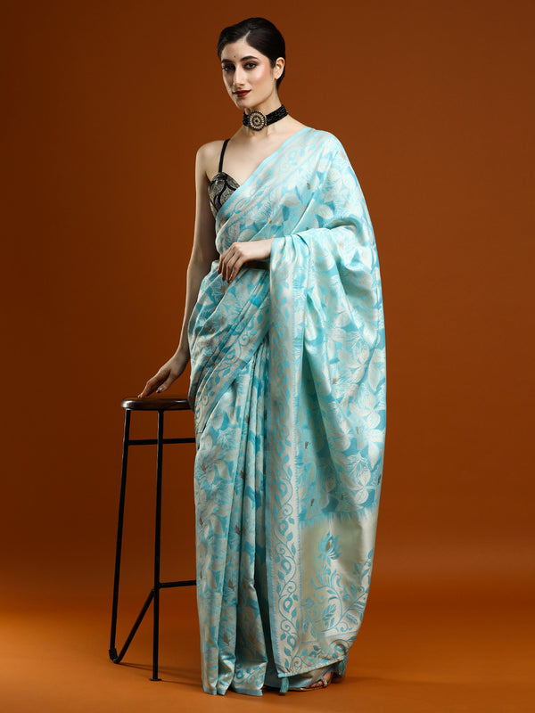 Sarha Floral Woven Design Zari Chanderi Saree in Light Blue