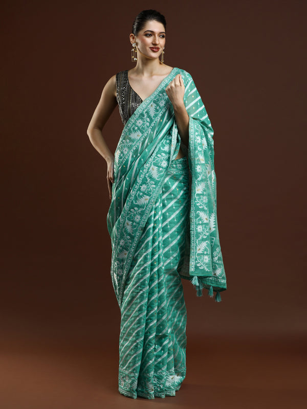 Sarha Women Ethnic Motifs Woven Design Chanderi Saree in Sea Green