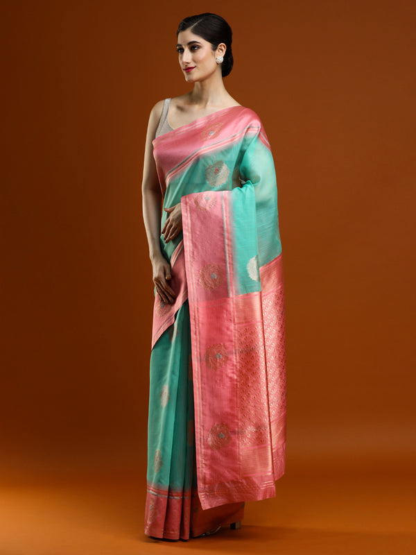 Sarha Women Woven Design Zari Banarasi Saree in Green
