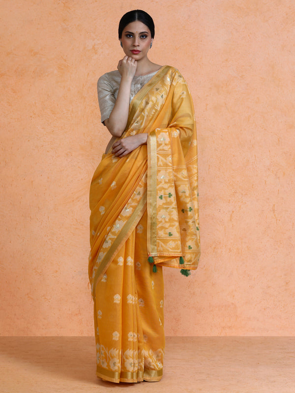 Sarha Ethnic Motifs Woven Design Zari Chanderi Saree in Yellow