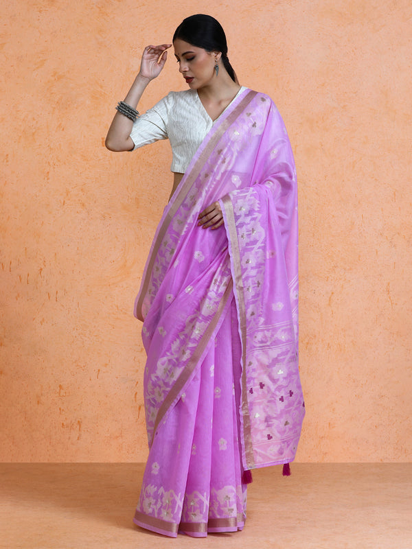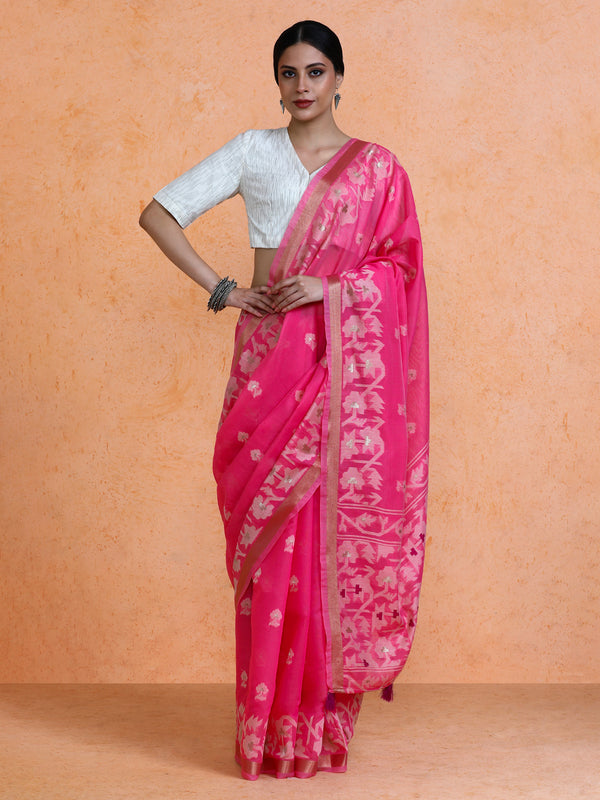 Sarha Floral Woven Design Zari Muga Saree in Pink