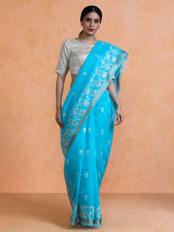 Sarha Ethnic Motifs Woven Design Chanderi Saree in Light Blue
