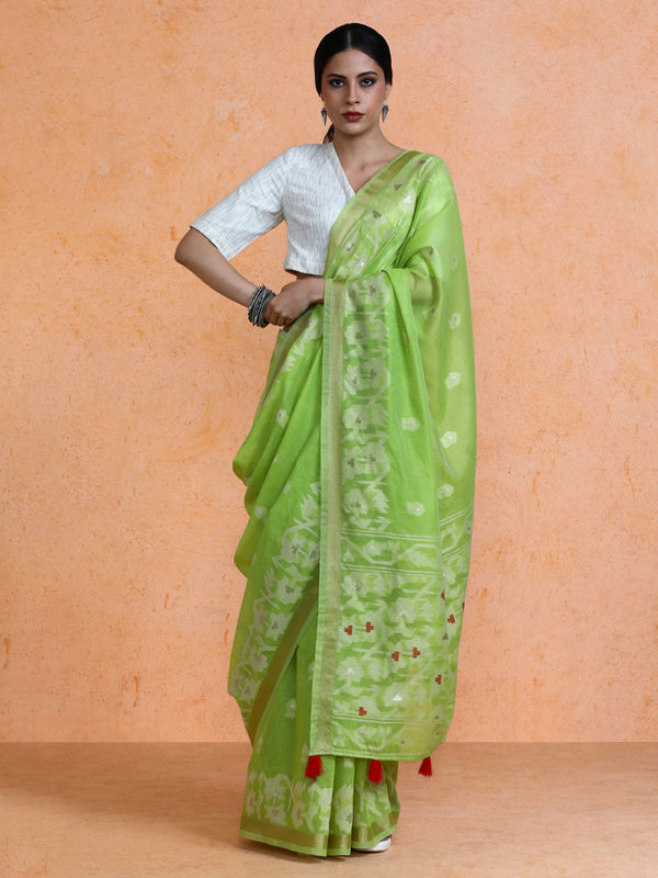 Sarha Woven Design Zari Chanderi Saree in Sea Green