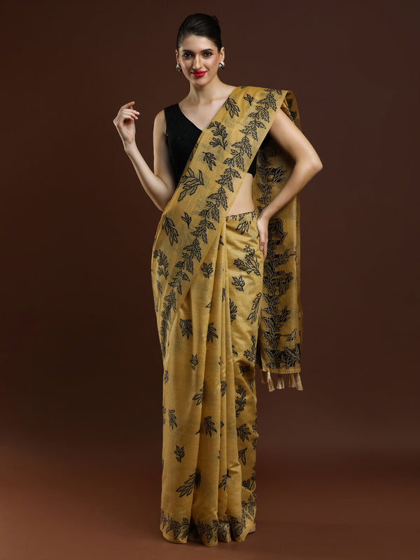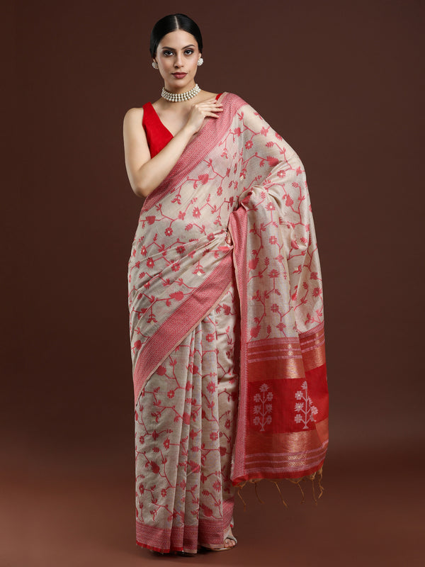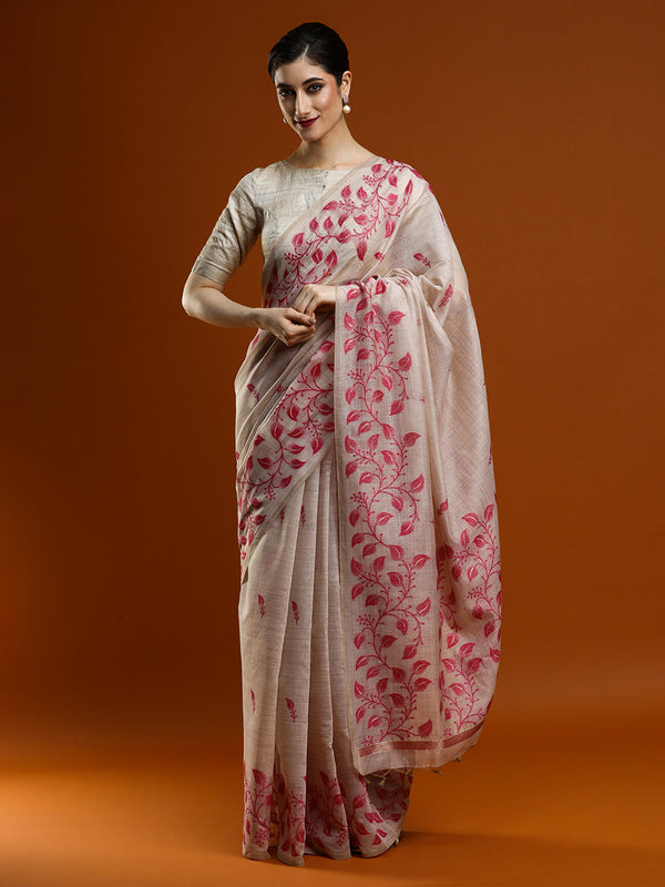 Sarha Floral Chanderi Saree in Beige