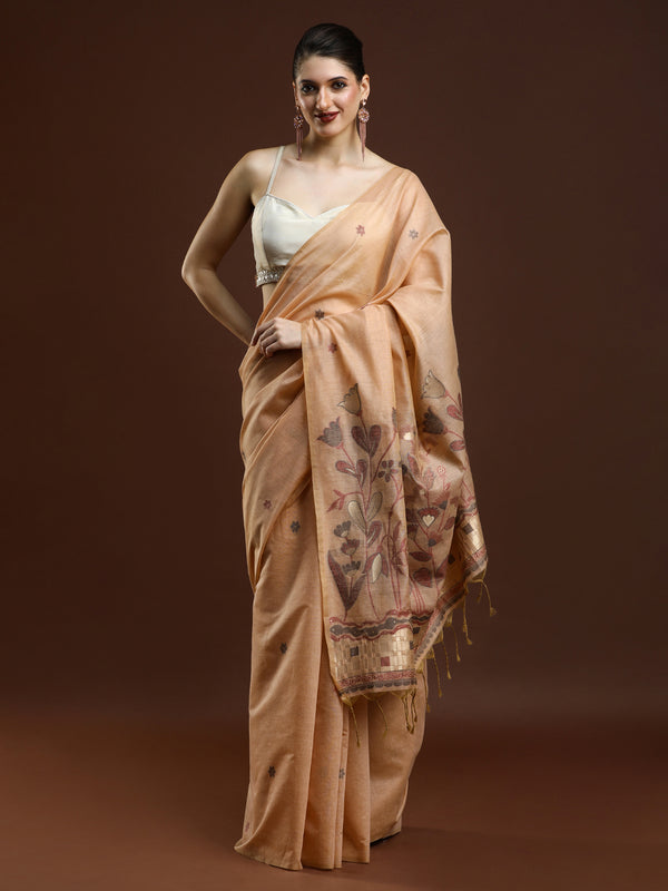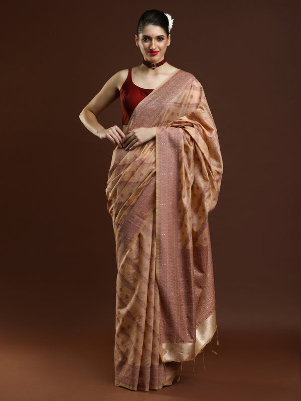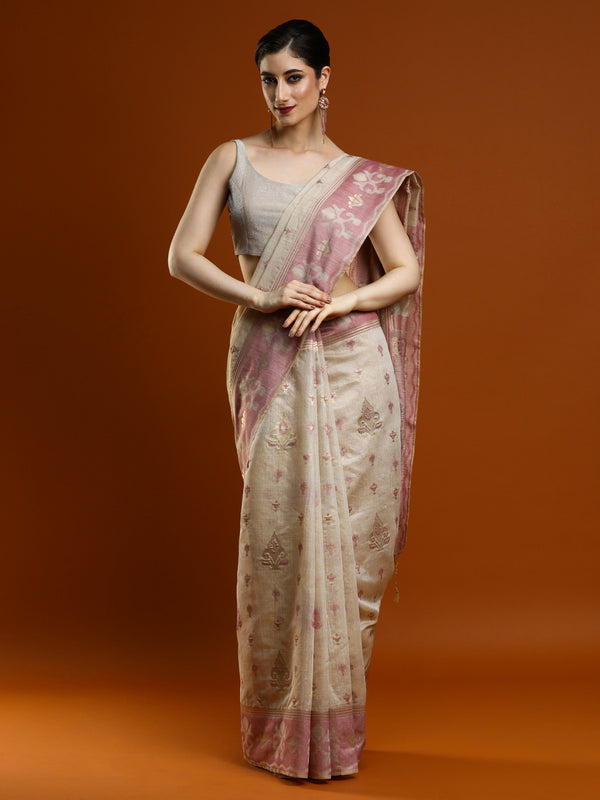 Sarha Women Woven Design Zari Muga Saree in Beige