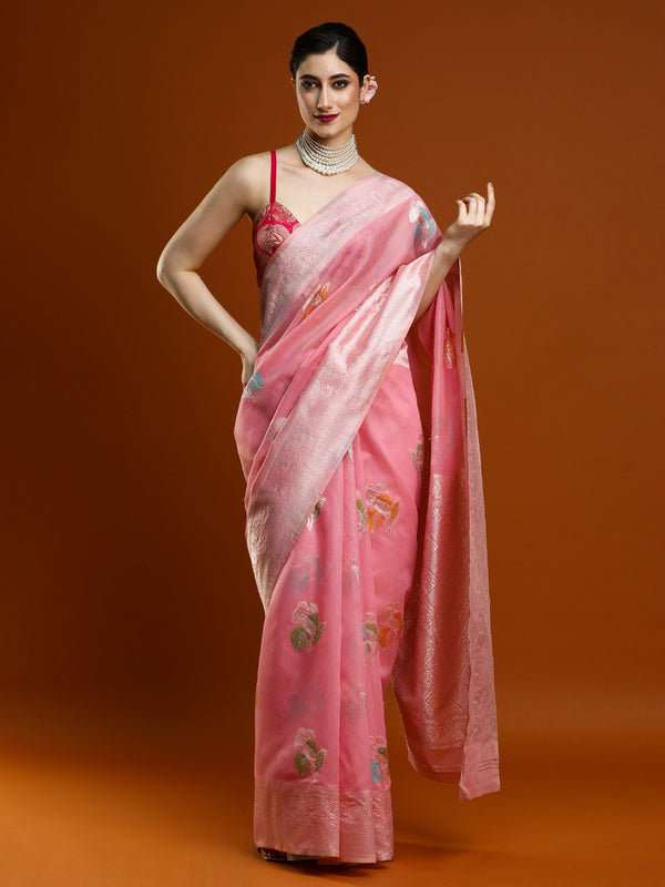 Sarha Woven Design Zari Banarasi Saree in Pink