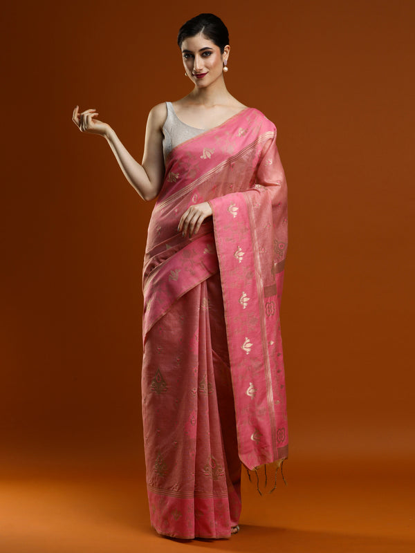 Sarha Floral Woven Design Zari Muga Saree in Pink