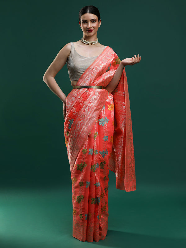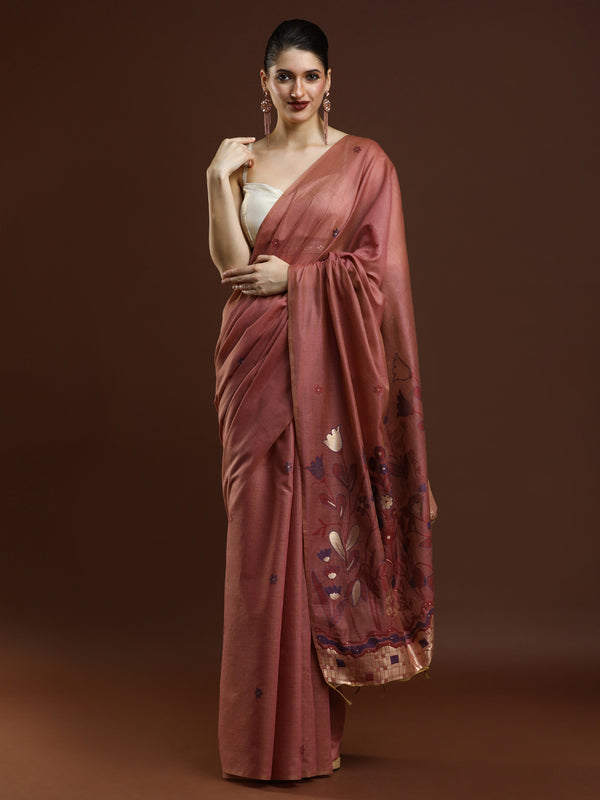 Sarha Women Floral Woven Design Muga Saree in Pink