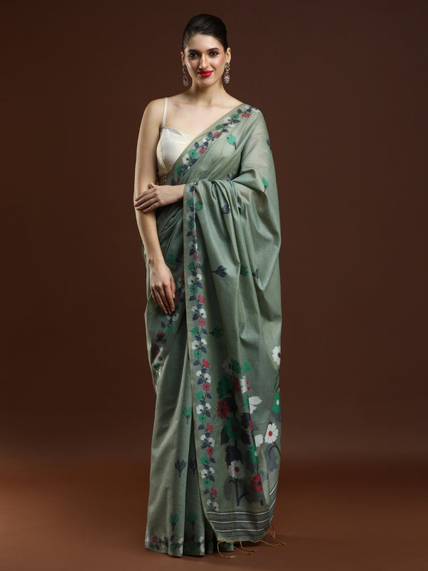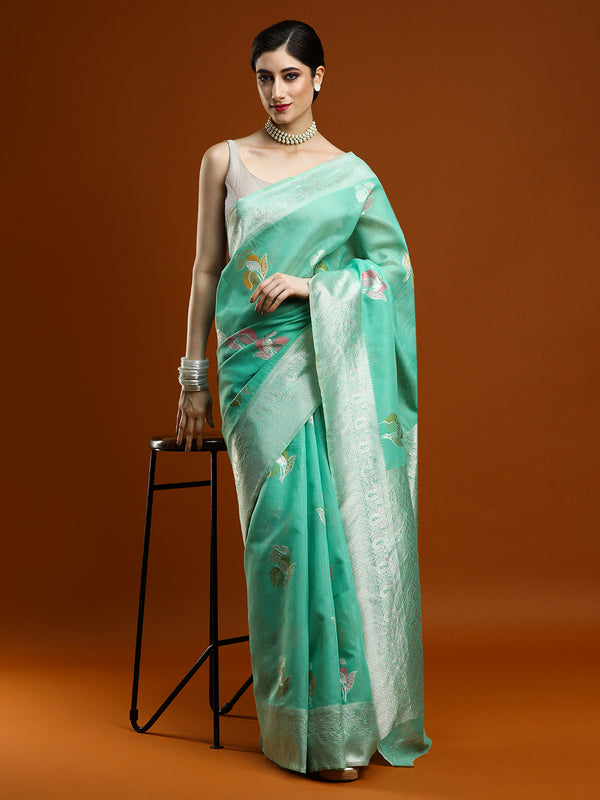 Sarha Woven Design Zari Chanderi Saree in Sea Green